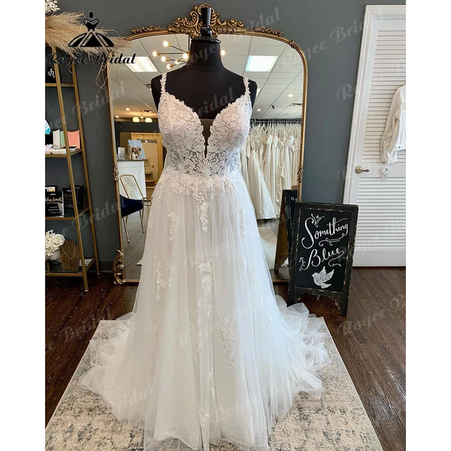 hochzeitskleid Beach Boho Applique Lace Wedding Dress with V Neck
